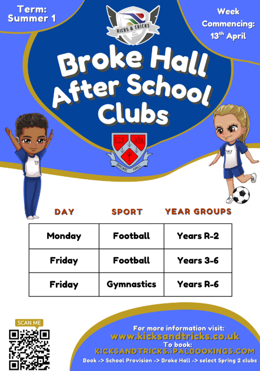 Broke Hall School endeavours to offer a variety of before and after school clubs. These clubs are managed by various providers, as well as also being provided by members of staff based on their interests and areas of expertise.